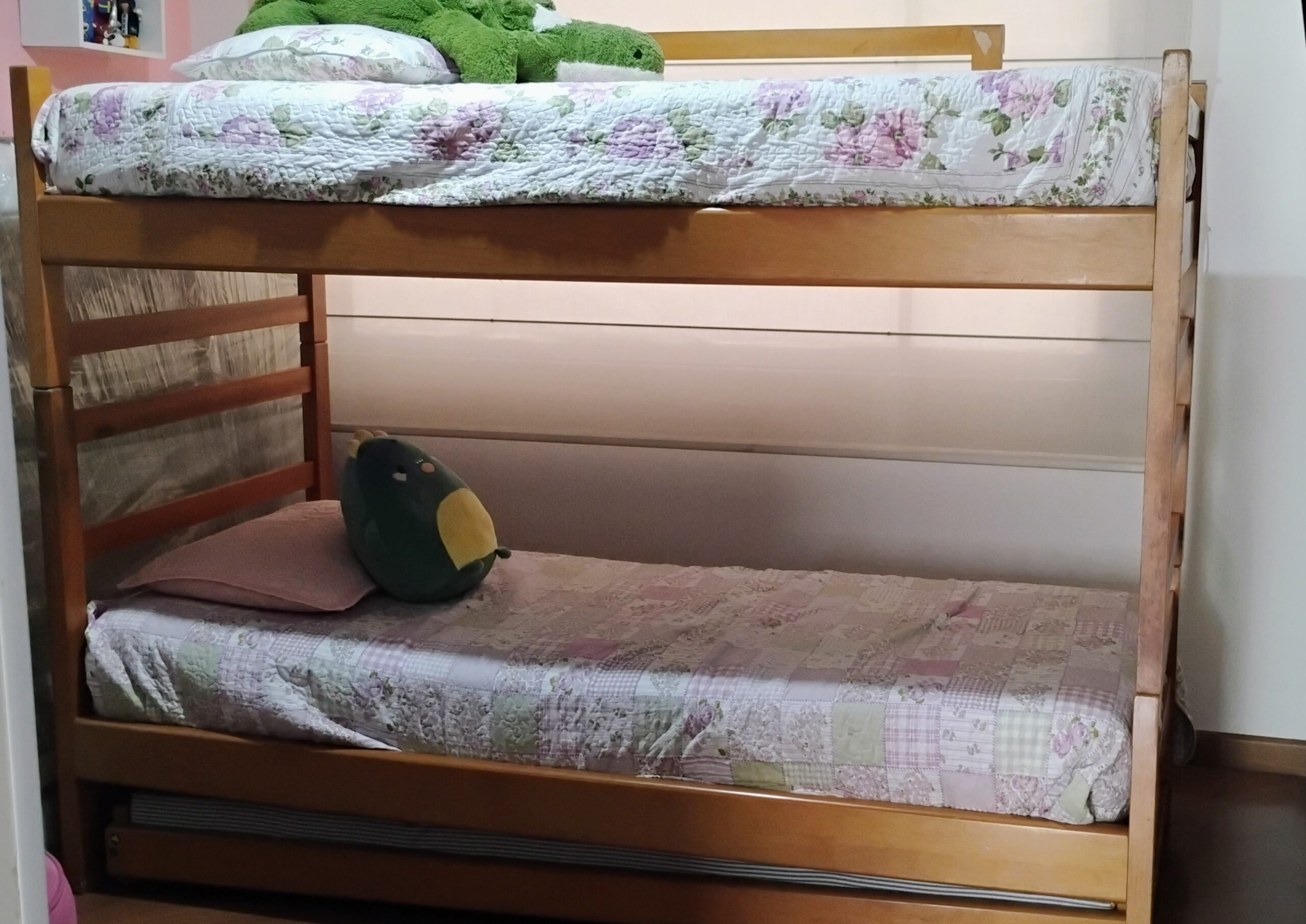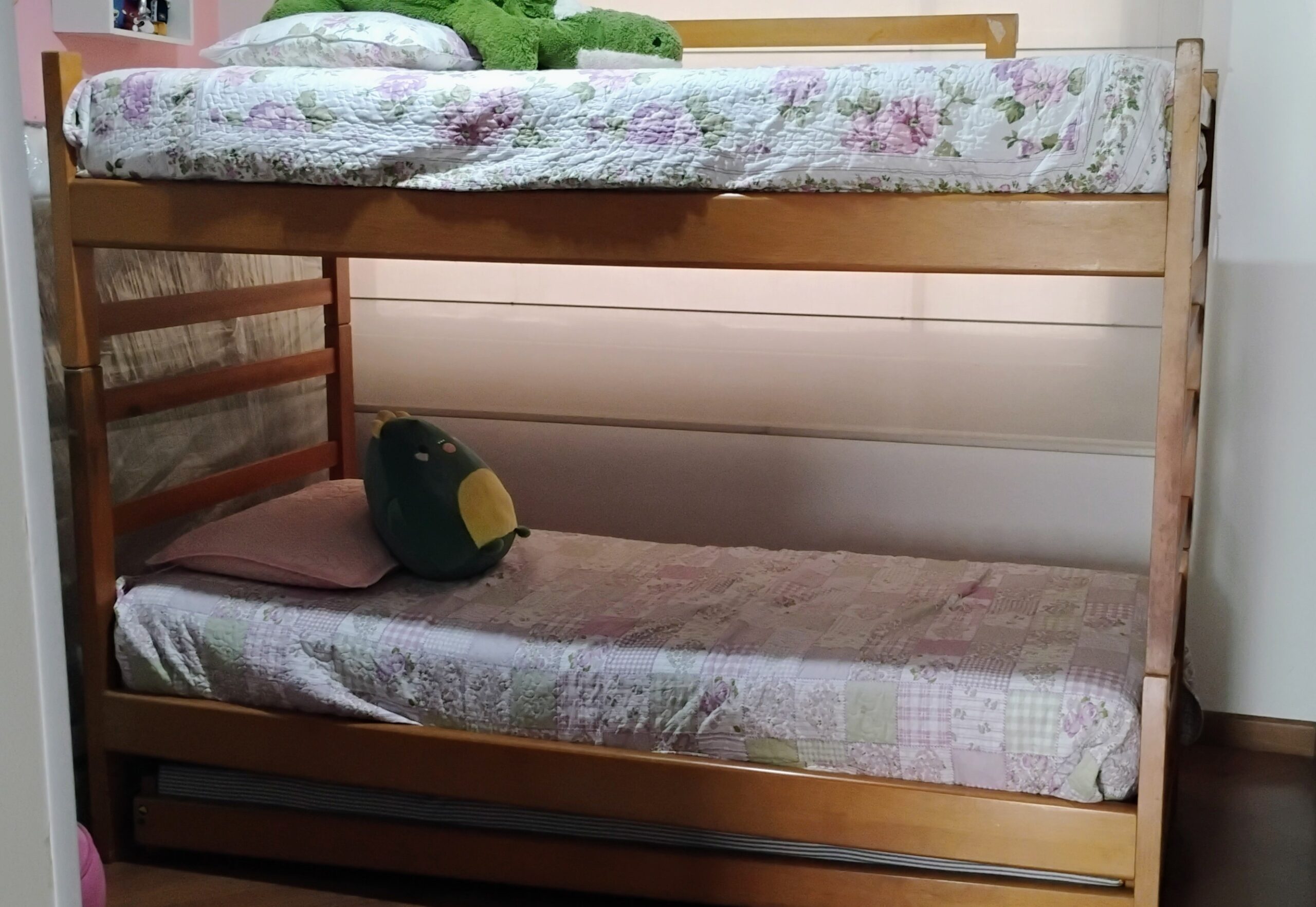 Se vende camarote en buen estado, con baranda para el segundo piso, colchones marca COMODISIMO, cama nido con espuma. El camarote se puede desarmar.No incluye decoración (Muñecos).Medidas:*Ancho: 96 cm*Alto:1.52 cm*Largo: 1.98 cm