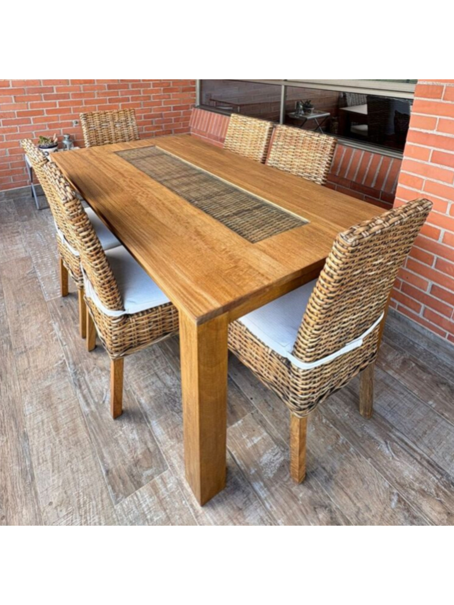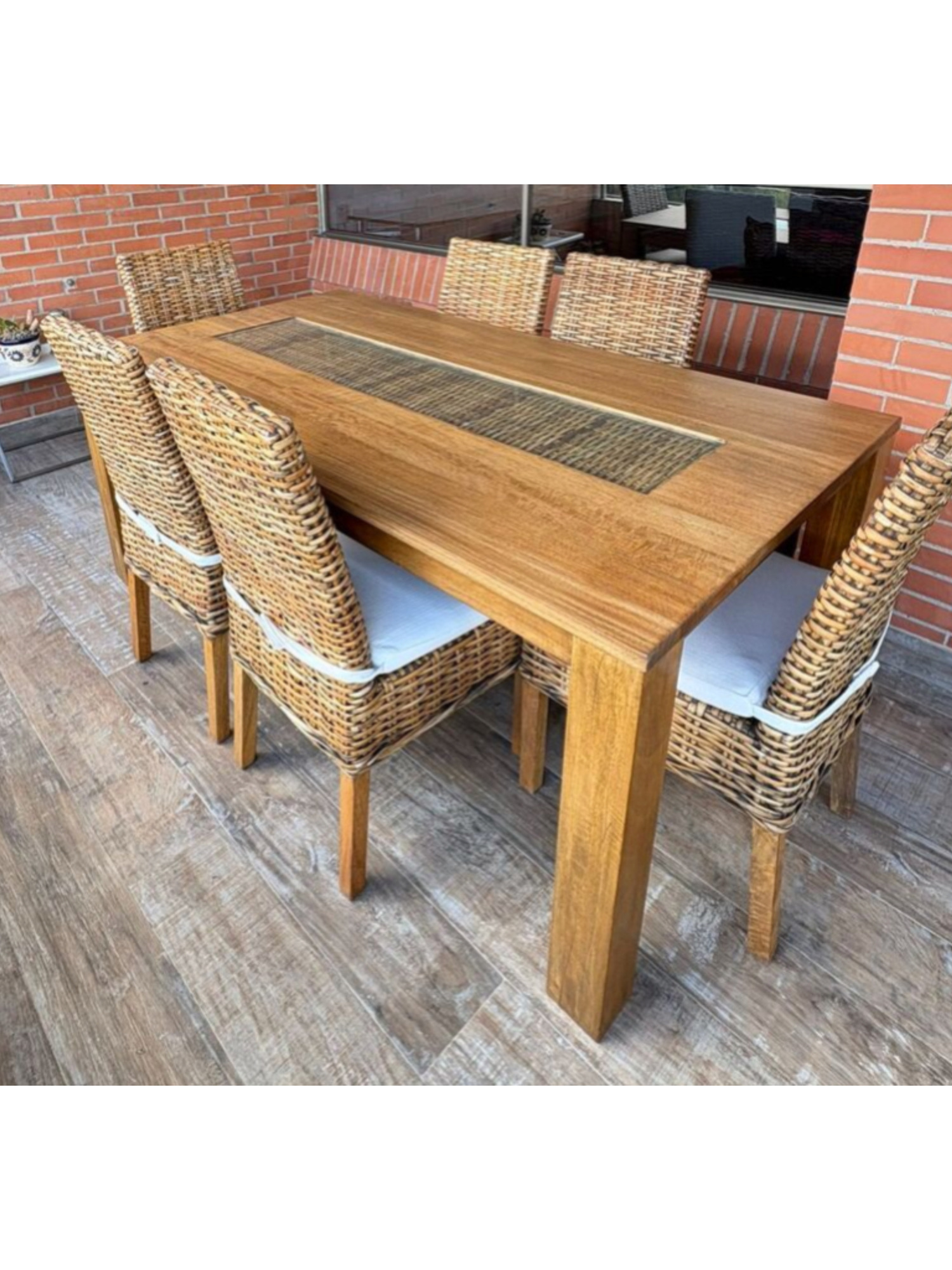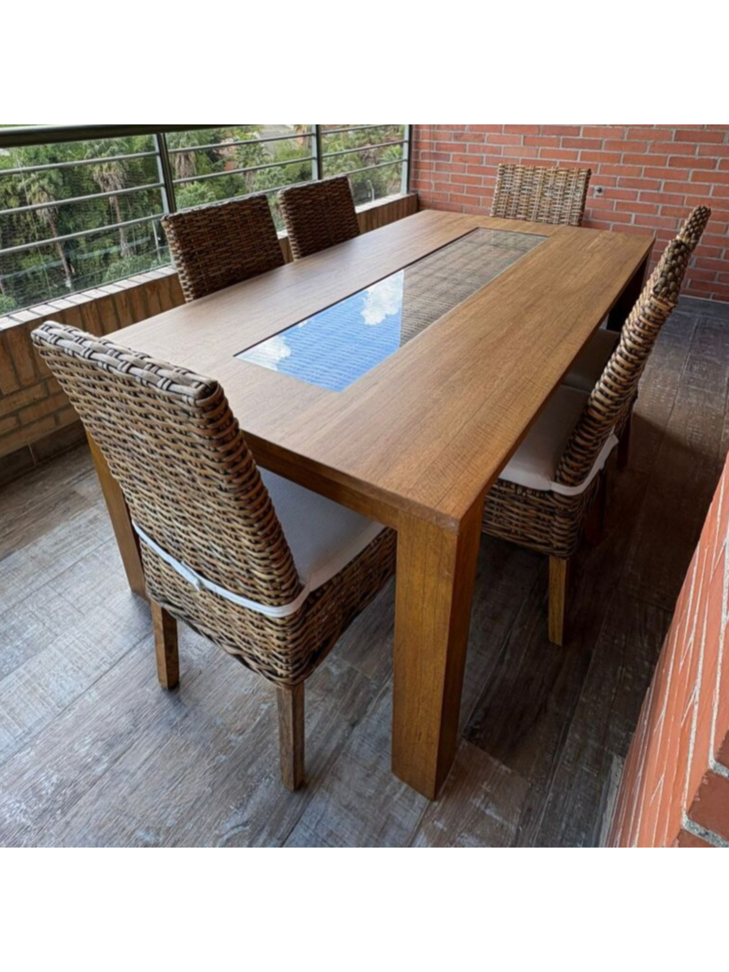 Comedor importado de Indonesia.Mesa rectangular en madera y 6 sillas en Rattan.Perfecto estado.