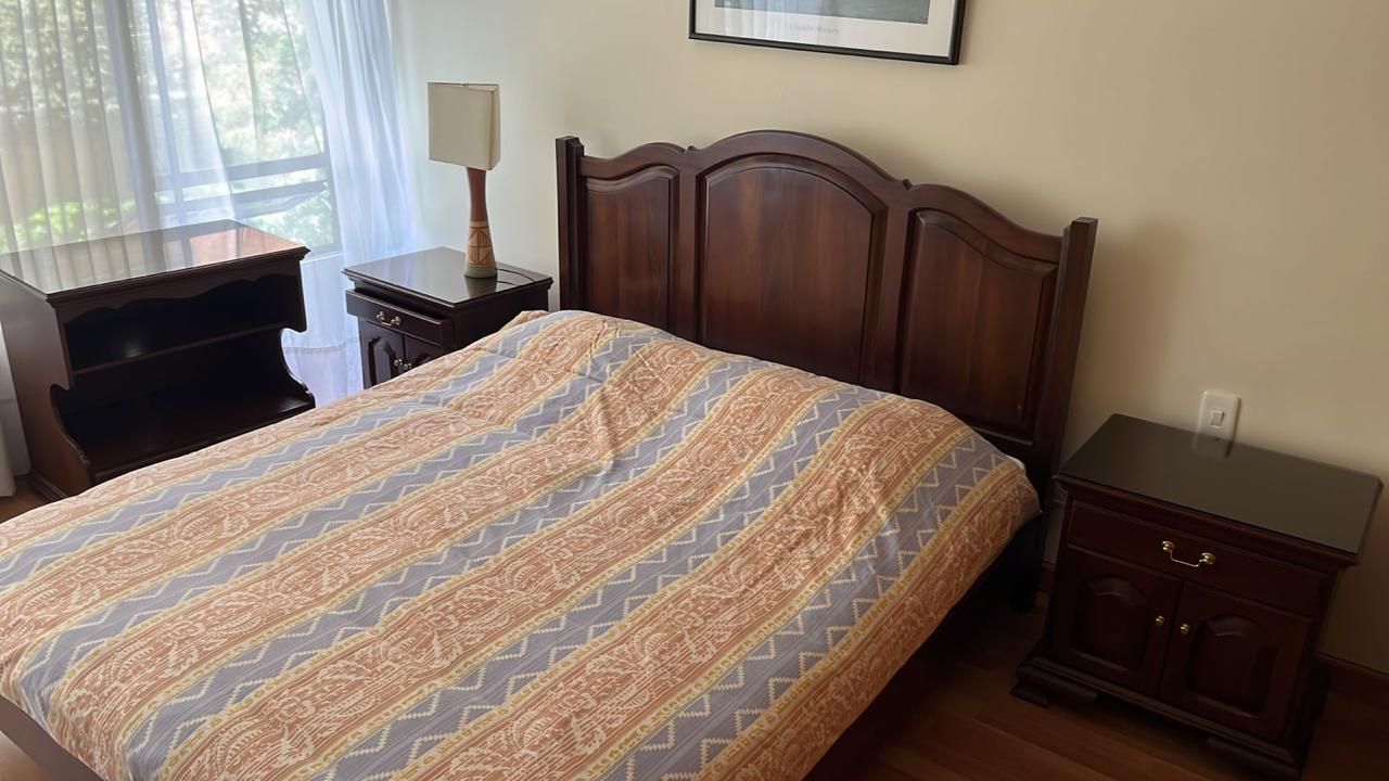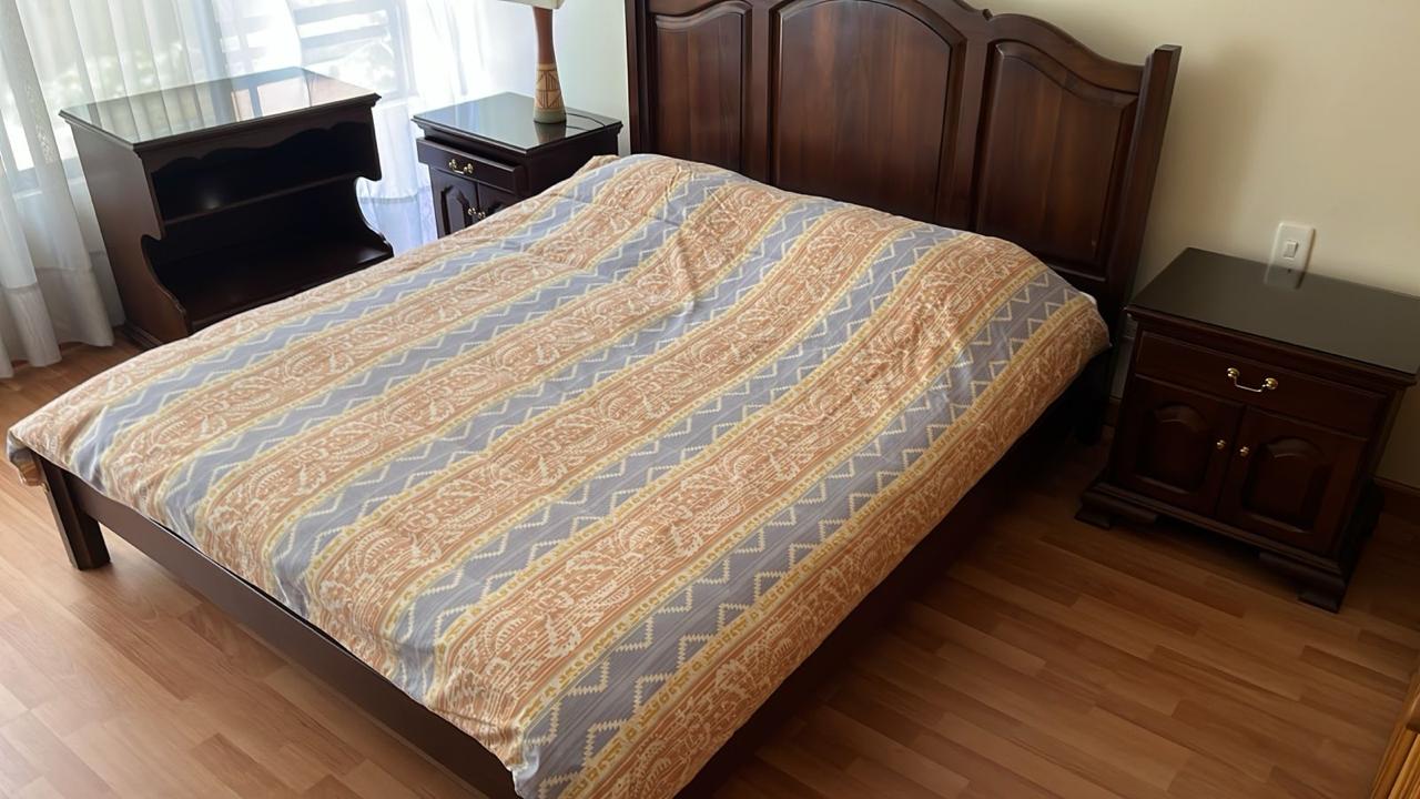 Cama Queen, 2 Mesas de noche y 1 Mesa auxiliar.