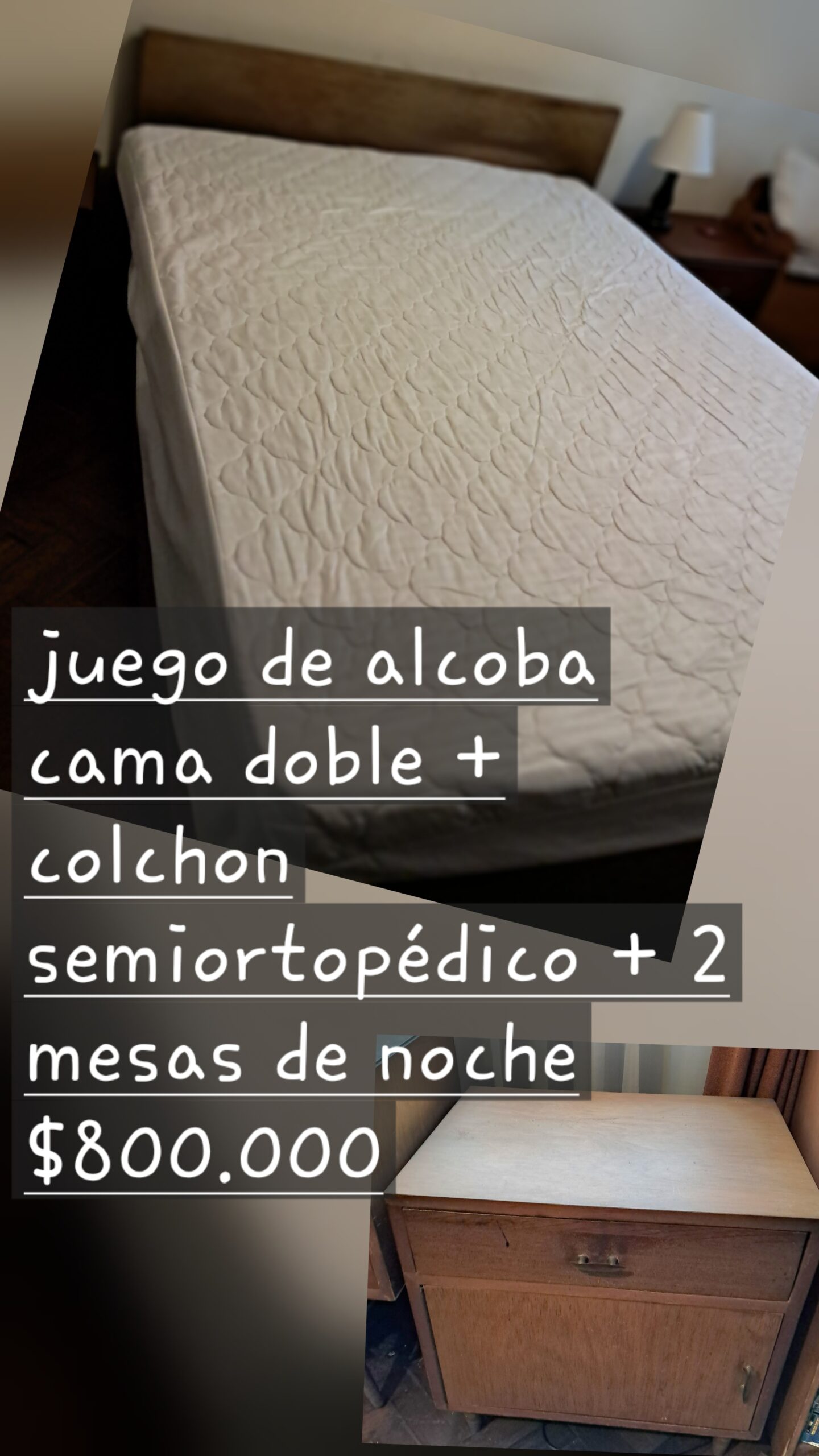 Cama y mesas de noche en madera, colchón en perfecto estado