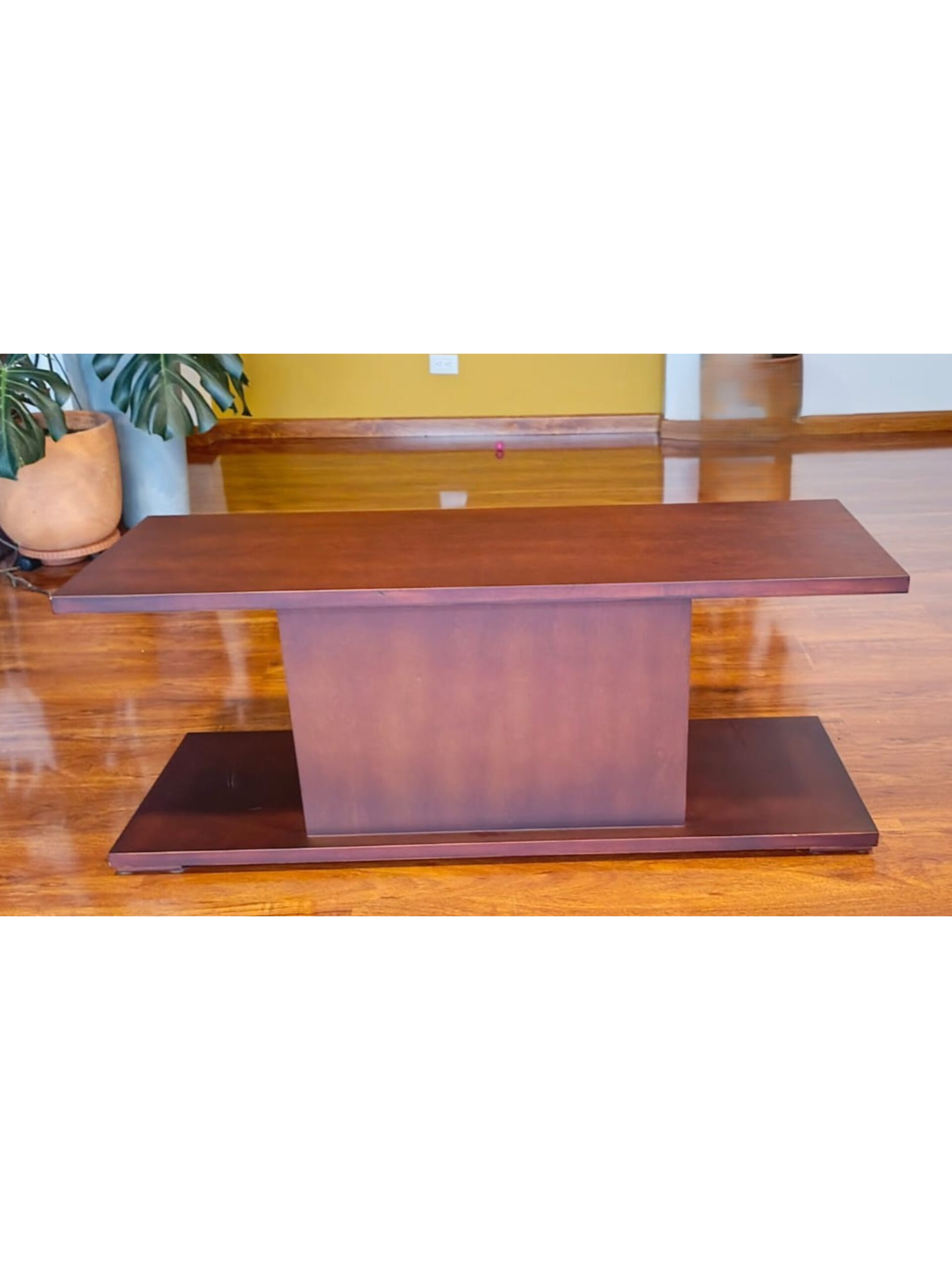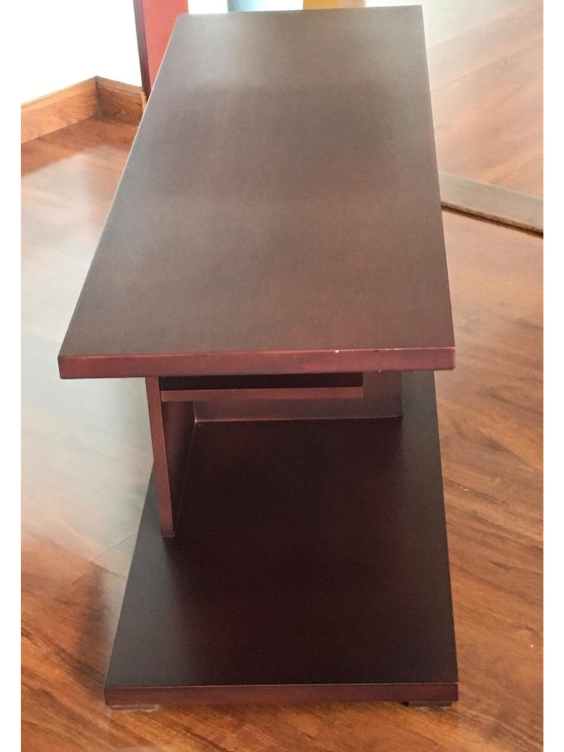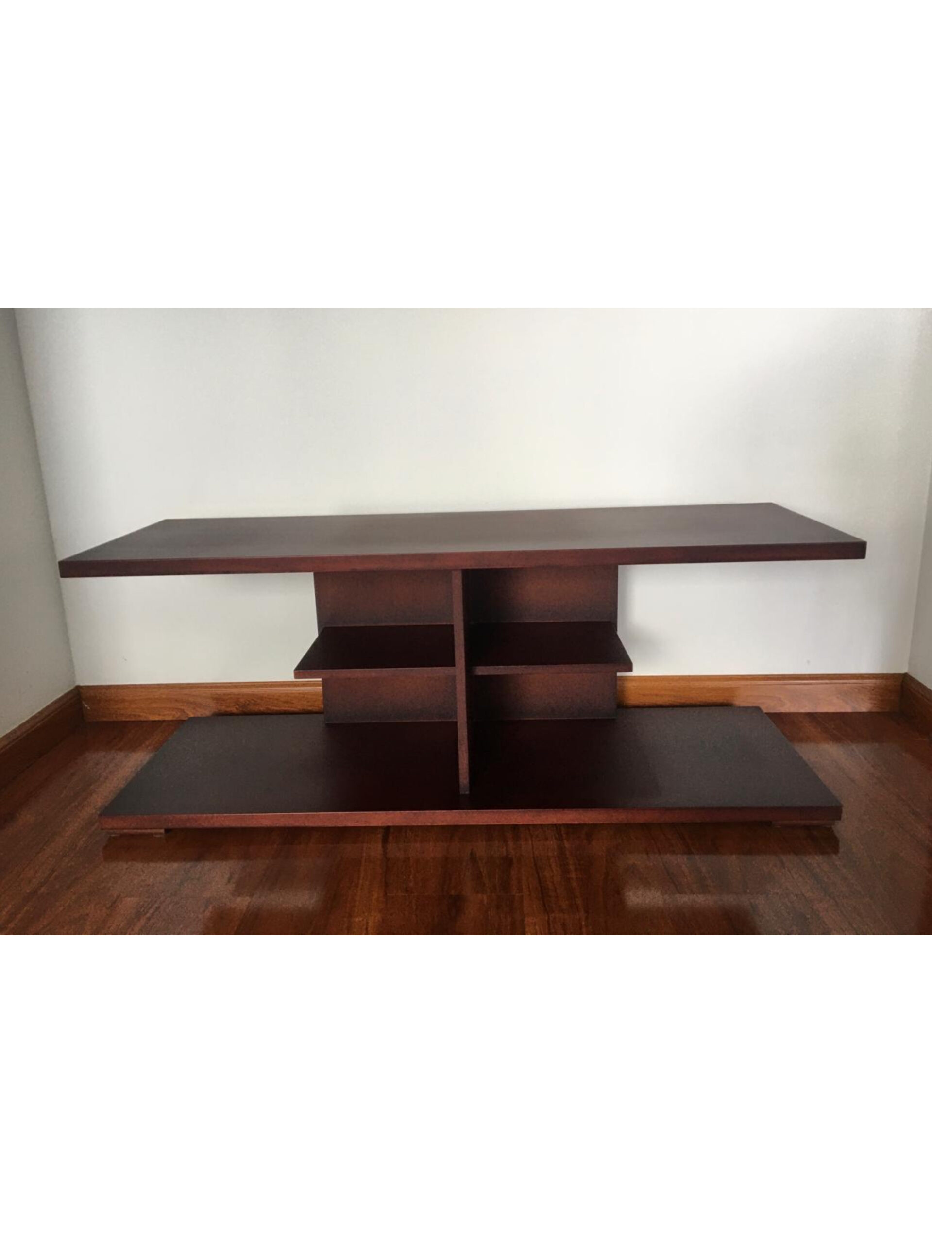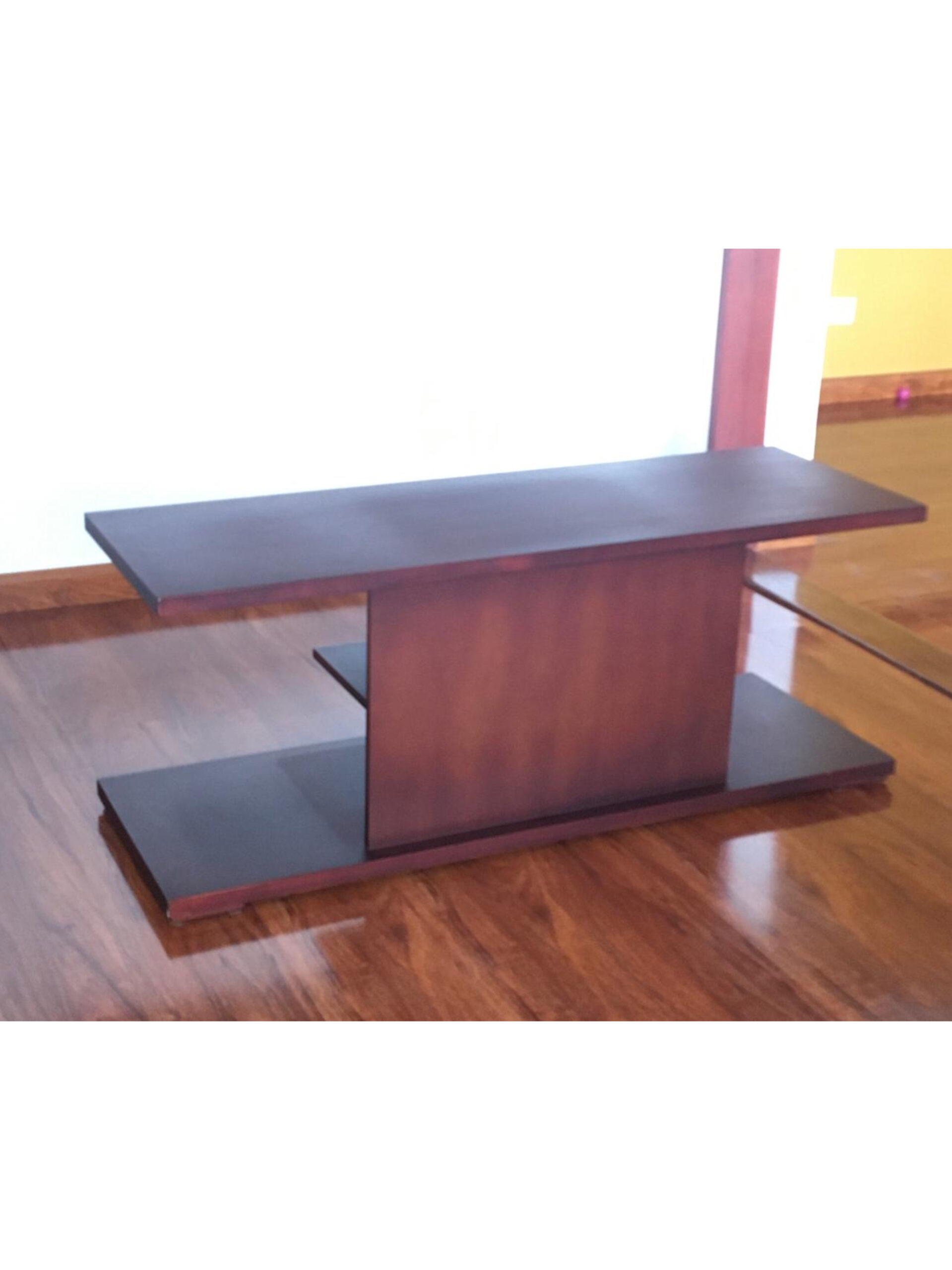 Mueble mesa de televisión con repisas abiertas. Estructura de dos niveles, con superficie superior amplia para soporte del televisor y base inferior continua para mayor estabilidad. Incluye compartimentos centrales abiertos, dispuestos de forma simétrica, adecuados para equipos electrónicos, consolas o almacenamiento de accesorios que te ayudará a organizar y a decorar tu sala.