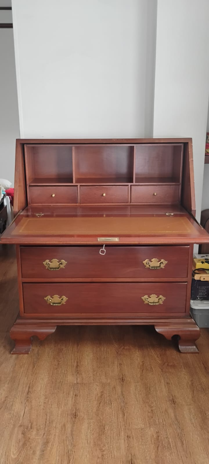 Mueble Secretaire / Secreter en madera con llave color cafe con dorado