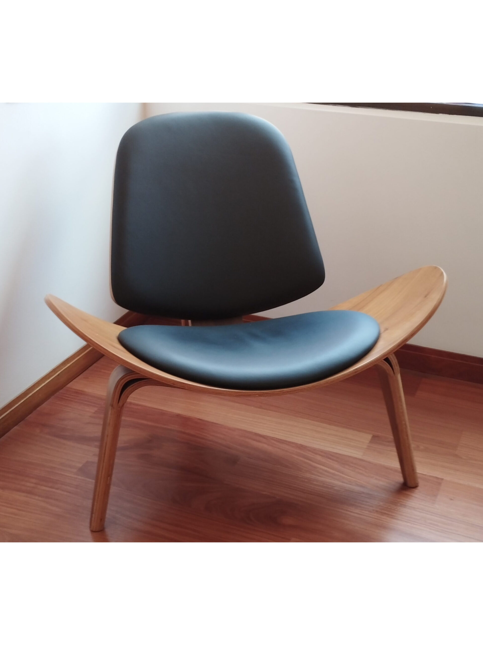 Silla de estilo escandinavo moderno, inspirada en el icónico diseño Shell Chair o CH07, creada por el diseñador danés Hans J. Wegner en 1963.