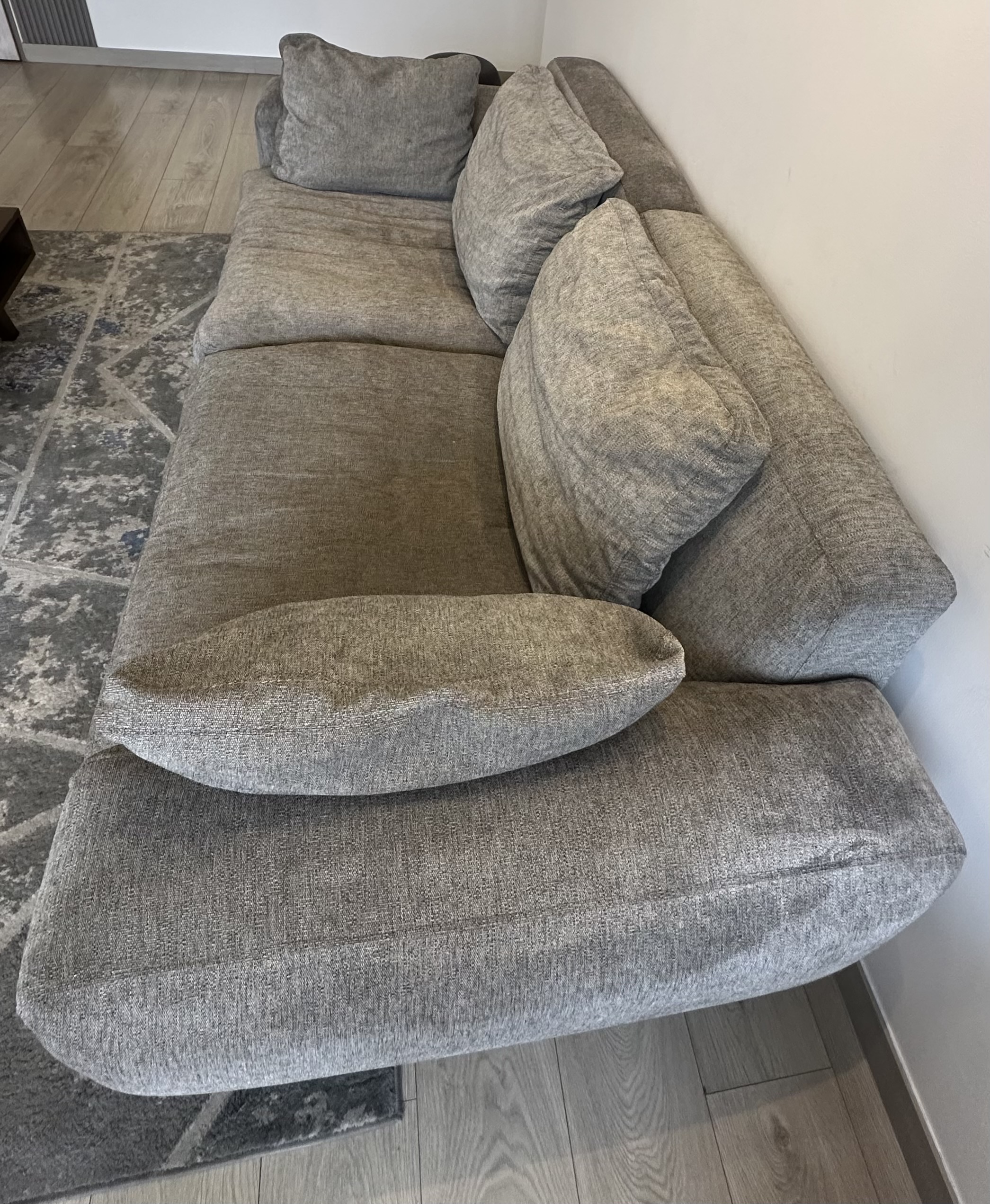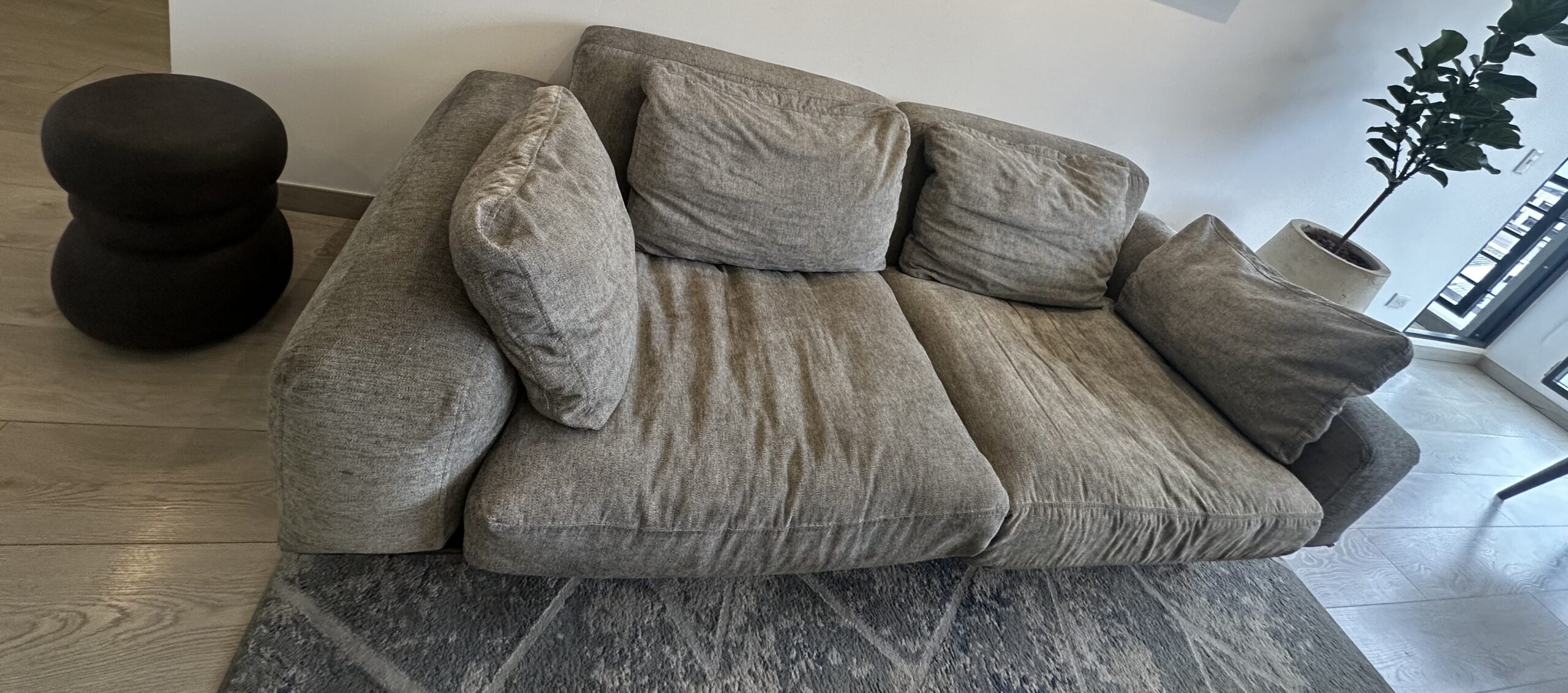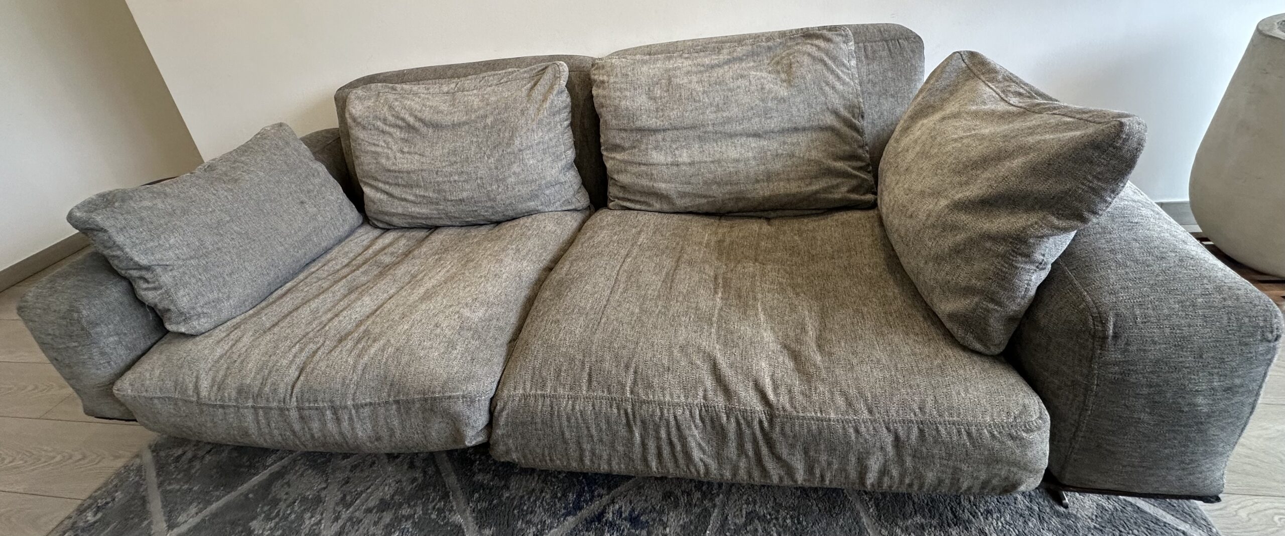 Sofá de sala de 2 puestos comprado en muebles y accesorios de color gris.